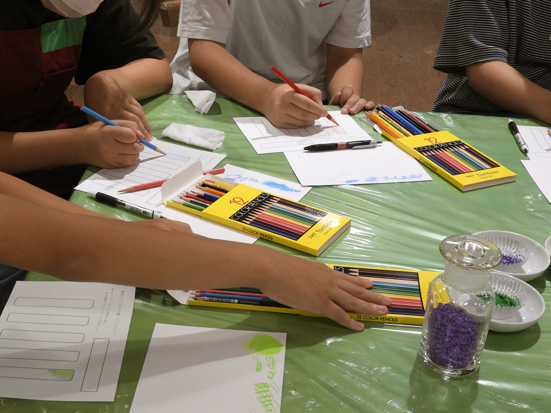 今回、数名の保護者の方々もプログラムを一緒に見守っていました。「家でも自分たちでクレヨンが作れないかな?」という声に答え、大関先生は顔料とミツロウだけでクレヨンを作ってくれました。「滑らかさはないけれど、たとえば家にあるスパイスやお茶の粉末などを顔料にして、ミツロウと混ぜるだけでも作ることができます。」と参加者親子に伝えました。「カレーにまつわるクレヨンを作ってみようか?」と親子で話しながら、会場を後にしていました。