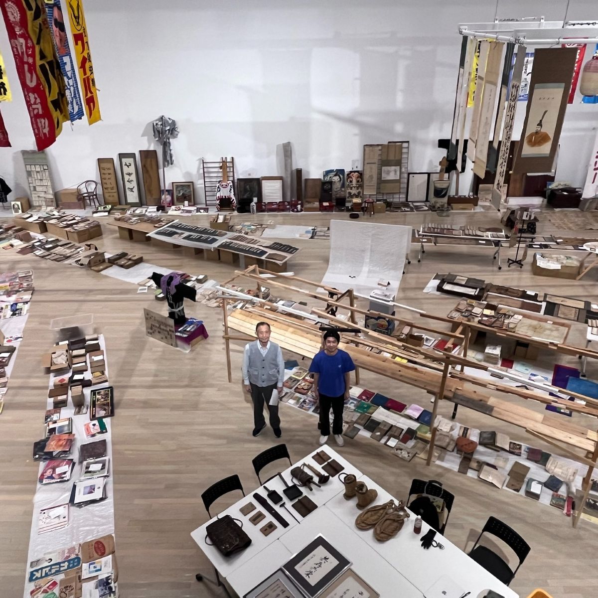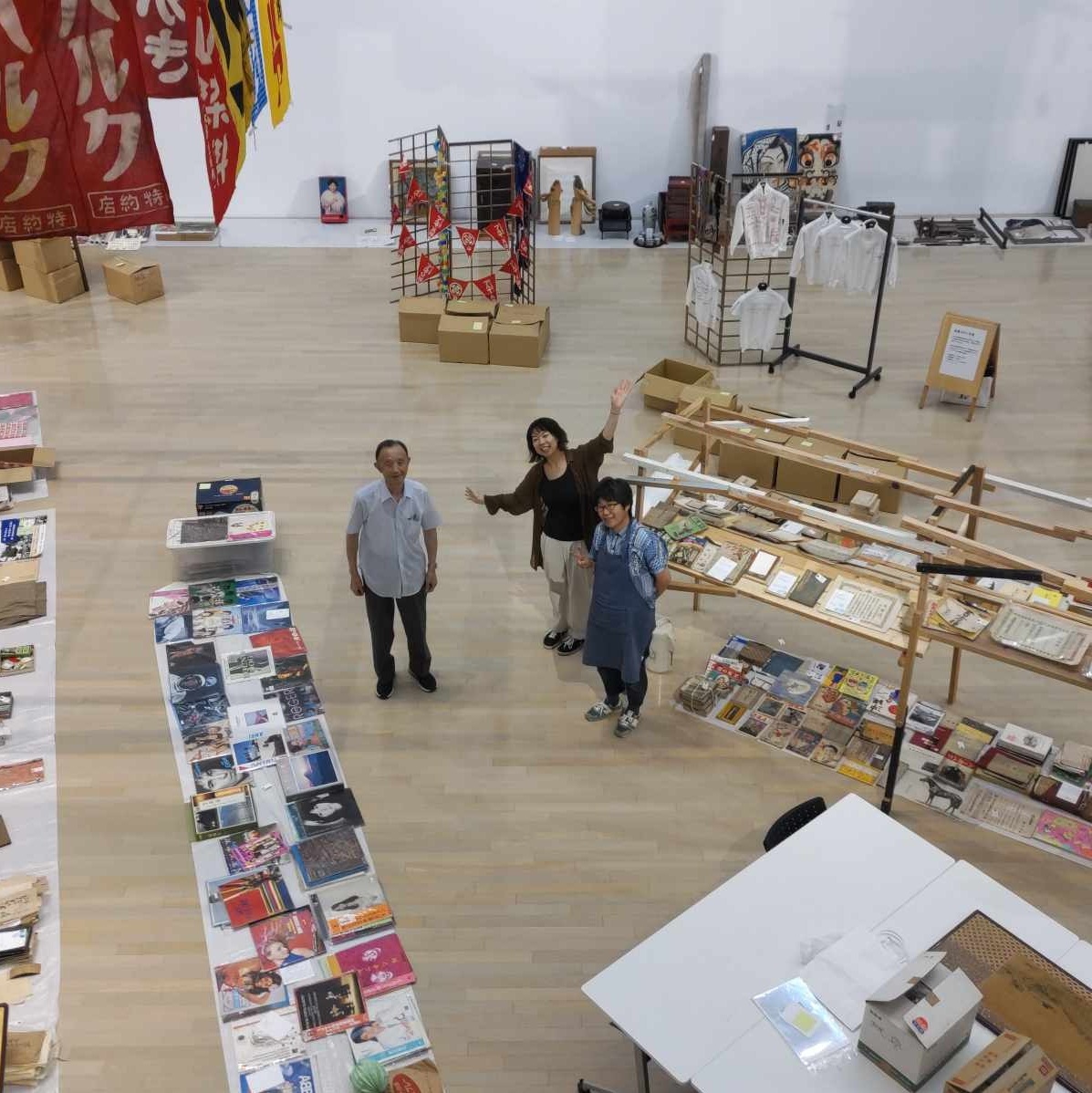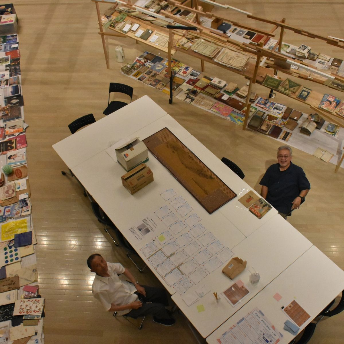 藤さんの棚に多賀糸さんが資料を展示。國政さんはHONDAの看板を修理。