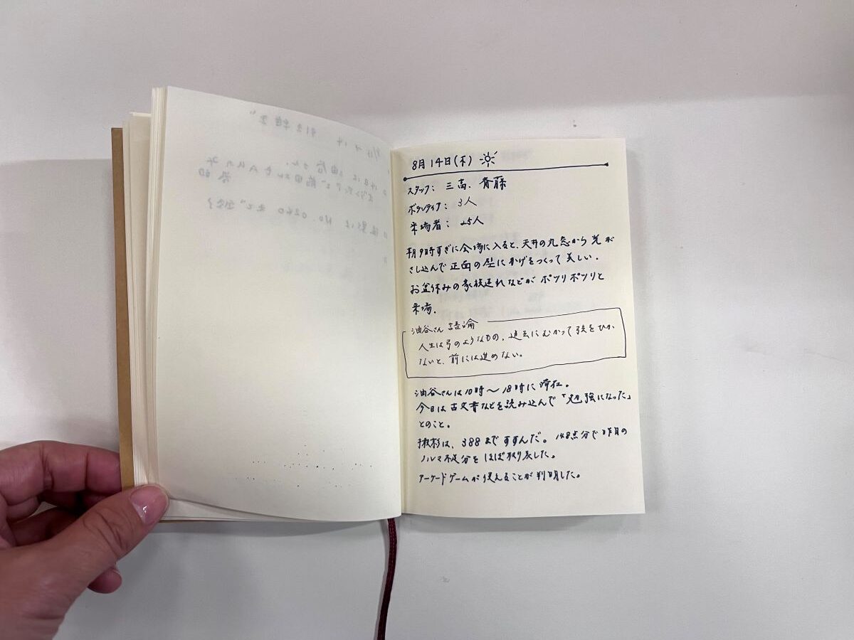 スタッフが日々の様子をメモした日報