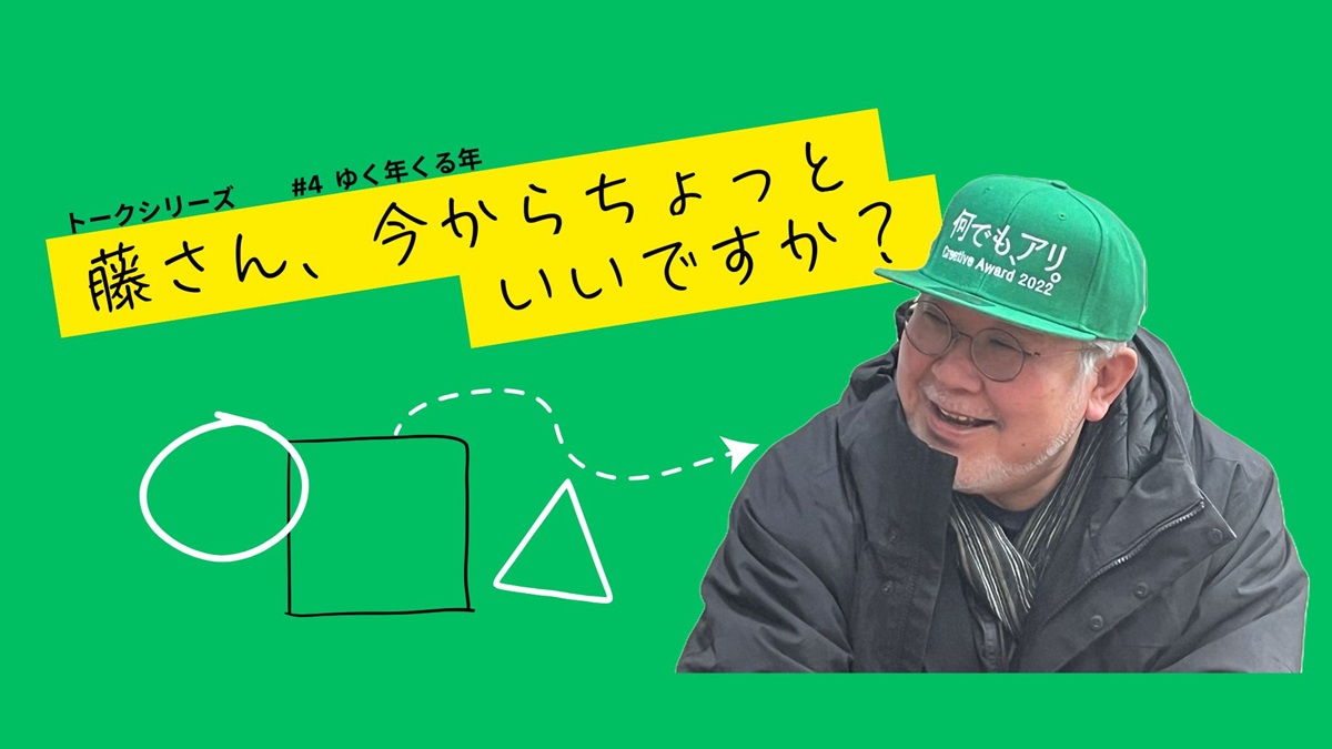 アーツセンターあきたの理事長・藤浩志と、事務局長の三富が、アーツセンターあきたのことを中心に四方山話を繰り広げる不定期のトークシリーズ「藤さん、今からちょっといいですか?」。収録方法を毎回実験しつつ、三富が勝手にテーマを設定し、藤に問いを投げかけるスタイルで進行します。