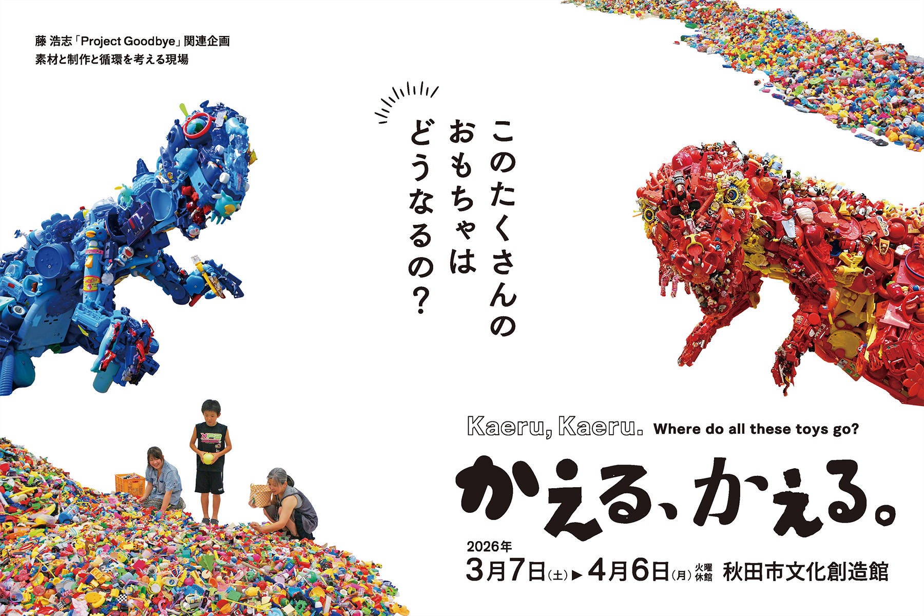 本企画「かえる、かえる。」は、藤浩志によるアートプロジェクト「Project Goodbye」のリサーチの経過をひらく試みです。廃棄や保存、循環といったテーマを軸に、つくること・あそぶこと・語ることを通して、私たちの身近な「もの」や「記憶」のこれからを問いかけます。